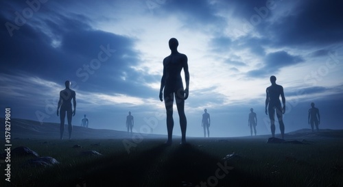 Eerie Silhouettes of Giant Figures Stand Against a Dramatic Sky