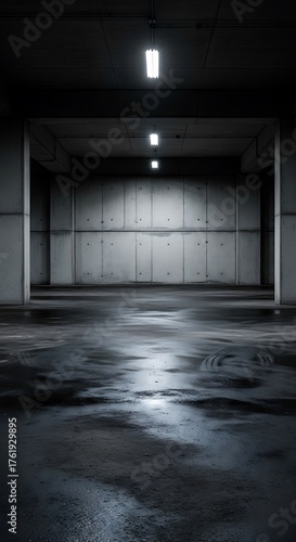 Eerie Warehouse Interior - A Study in Light and Shadow.