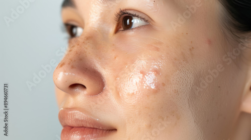 Effective Kojic Acid Treatment for Lightening Acne Scars on South Korean Woman’s Face with Smooth Even Skin Tone