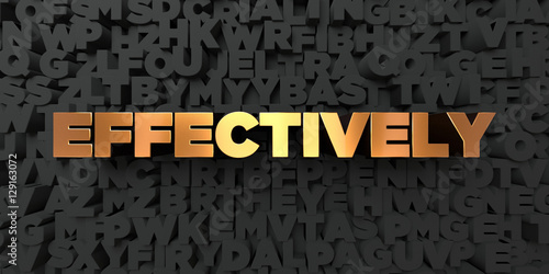 Effectively - Gold text on black background - 3D rendered royalty free stock picture. This image can be used for an online website banner ad or a print postcard.
