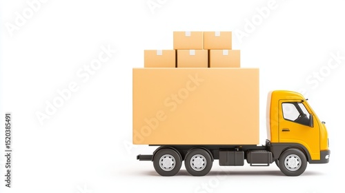 Efficient 3D eCommerce Package Delivery Service on White Background with Copy Space for Text