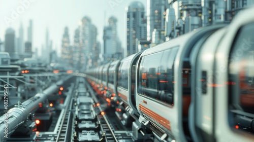 Efficient AI-Managed Transportation Hub in Futuristic Cityscape with Automated Trains and Smart Traffic Flow