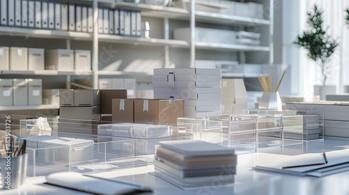 Efficient Elegance Organized Workspace with Shipping Supplies for Modern Packaging Operations