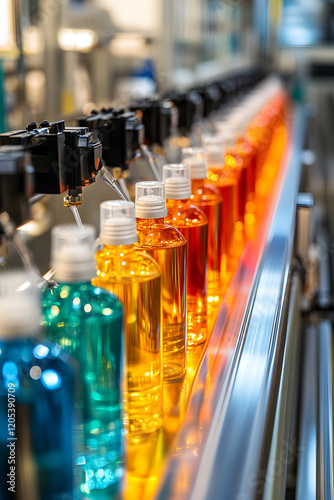 Efficient Shampoo Production: Robotic Filling and Precision in a Modern Factory Environment