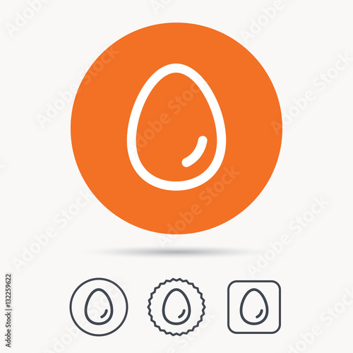 Egg icon. Breakfast food symbol. Orange circle button with web icon. Star and square design. Vector