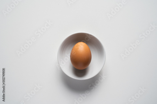 egg on white plate and white background