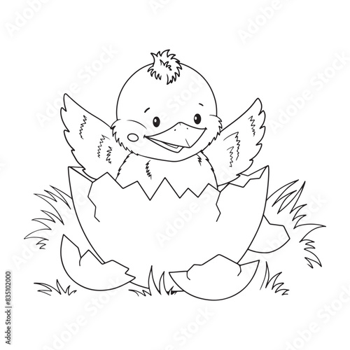 egg with a cute little chicken coloring page,isolated vector illustration on white background,square composition,template for coloring or activity book for children