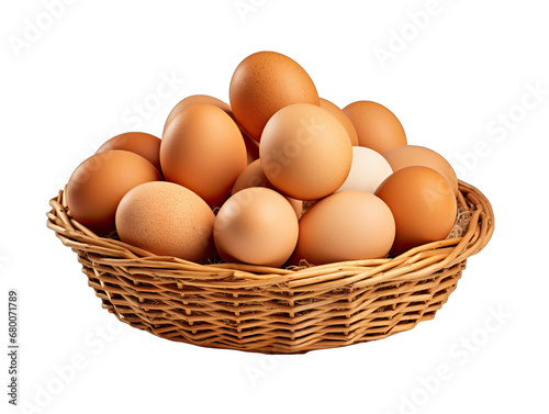 Eggs in a Wicker Basket Isolated on Transparent or White Background, PNG