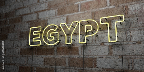 EGYPT - Glowing Neon Sign on stonework wall - 3D rendered royalty free stock illustration. Can be used for online banner ads and direct mailers..
