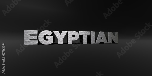 EGYPTIAN - hammered metal finish text on black studio - 3D rendered royalty free stock photo. This image can be used for an online website banner ad or a print postcard.
