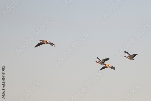 Egyptian goose flock in fligh.