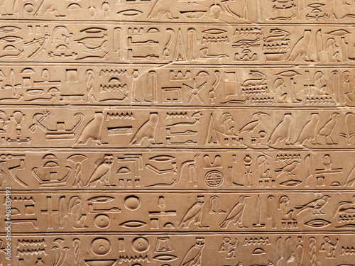 Egyptian hieroglyphs on a stone wall. The language of an ancient civilization.