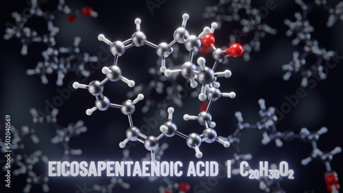 Eicosapentaenoic acid (EPA) molecular structure. 3D illustration