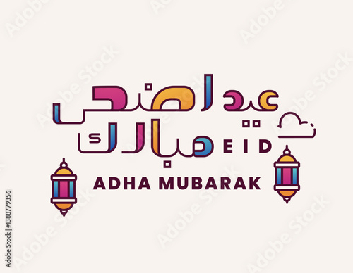 Eid Adha Mubarak arabic calligraphy with line art design logo