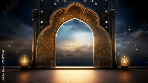 Eid Al Adha background with mosque door. 3D rendering