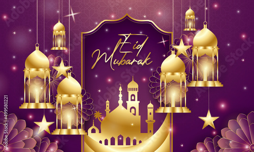 Eid Mubarak colorful luxury Islamic background with decorative ornament, eid Mubarak social media post design.
