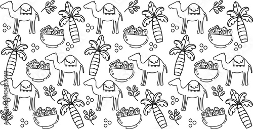 Eid Mubarak Doodle Pattern, Islamic Festive Seamless Background, Ramadan Eid Celebration Vector