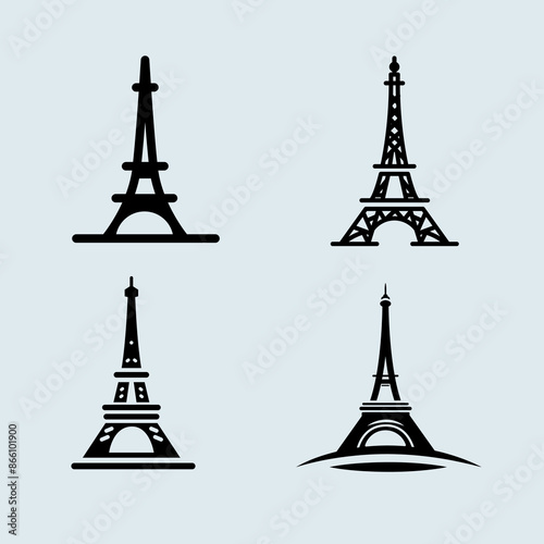 Eiffel tower, logo icon, Paris city France Flag.Flat design, silhouette, structure, architecture, vector