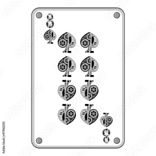 Eight of spades in the style of mechanical steampunk. Vector illustration.