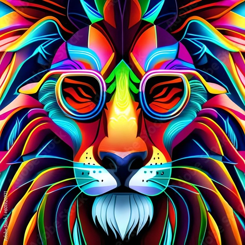 Ein AI genertierter Mosaik Löwe im Punk Style mit Sonnenbrille.