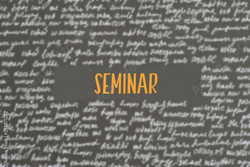 Ein Blatt Papier mit verschiedenn Worten und ein Seminar