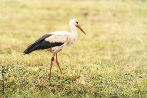 Ein junger Weissstorch auf einem Feld in der Reussebene, Schweiz