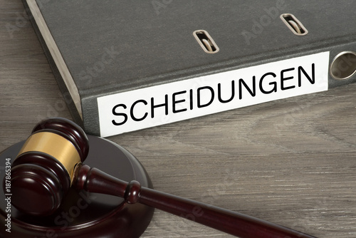 Ein Richterhammer und ein Ordner mit dem Aufdruck Scheidungen