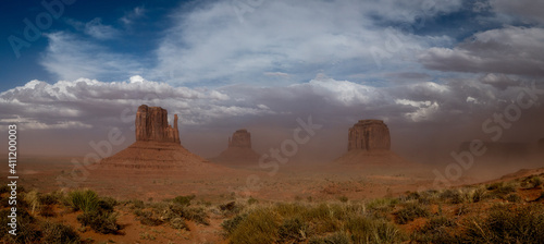 Ein Sandsturm fegt durch das Monument Valley, dem "Wilden Westen" der USA.