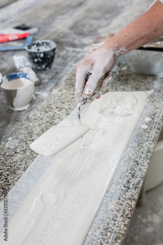 Ein Stukkateur erstellt ein Stuck Profil