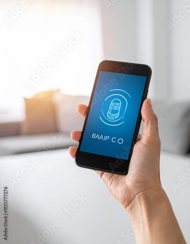 Eine Frau hält ein Smartphone, auf dessen Bildschirm das Symbol eines Sprachassistenten angezeigt wird