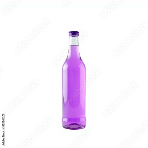 einzelne Glasflasche mit Flüssigkeit vor weißem Hintergrund.