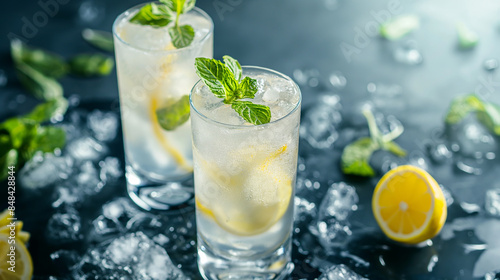 Elderflower Collins cocktail in glass, refreshing alcohol drink