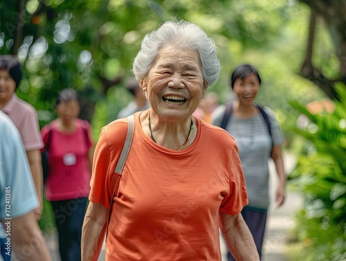 Elderly Bliss: Seniors Hiking and Relaxing in Park,Senior Serenity: Friends Enjoying Nature