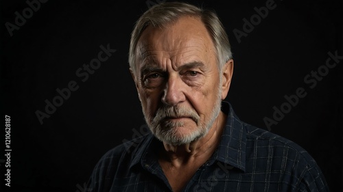 elderly caucasian male in casual wear on black background model portrait looking serious for ad concept space for text