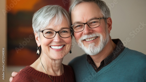 Elderly couple sharing warm smiles, embodying enduring love and connection.