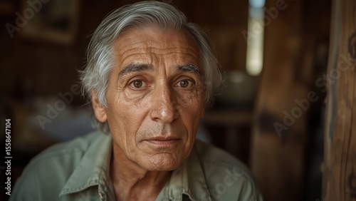 Elderly man. Elderly man with gray hair serious face close up indoor p
