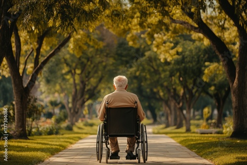 Elderly man enjoying a relaxing stroll in a park on a sunny day