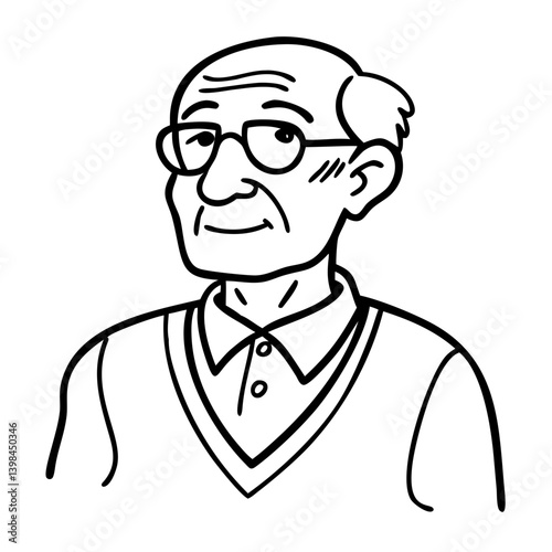Elderly Man Line Art Vector Portrait for Illustrations and Coloring Books