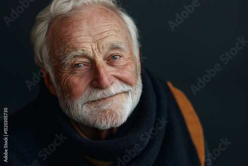 Elderly Man Portrait. Smiling, Gray-Haired, and Bearded Senior Brimming with Wisdom and Warmth