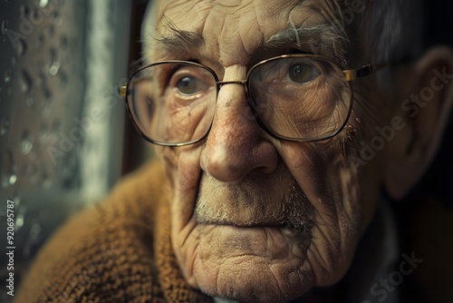 Elderly Man Sitting Alone in an Outdoor Park, Capturing the Solitude of an Elderly Person in Autumn