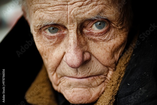 Elderly man with deep wrinkles symbolizing aging wisdom and life experience in a quiet intimate setting with soft lighting