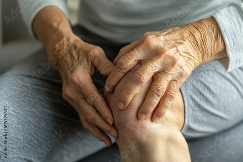 Elderly man with leg pain from arthritis at home