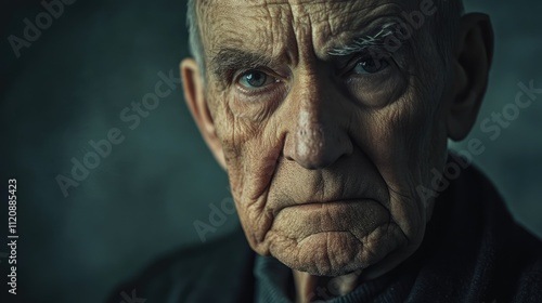 Elderly man's expressive portrait highlighting age and wisdom with deep textures and emotive gaze against a subdued background