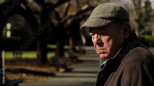 Elderly person standing alone, looking confused and uncertain, capturing the vulnerability and challenges faced by the aging population in modern society.