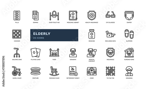 elderly senior people at nursing home fun happy detailed outline icon set