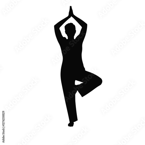 Elderly woman practicing yoga tree pose silhouette, mindfulness