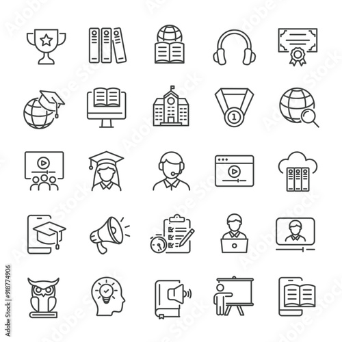 E-learning, education, online school, webinar thin line icons collection. Editable stroke. For website marketing design, logo, app, template, ui, etc. Vector illustration.