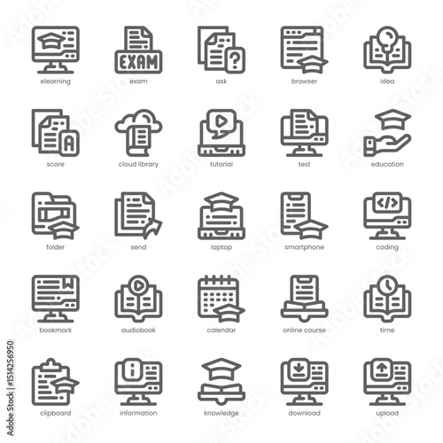Elearning Icon pack for your website, mobile, presentation, and logo design. Elearning Icon outline design. Vector graphics illustration and editable stroke.