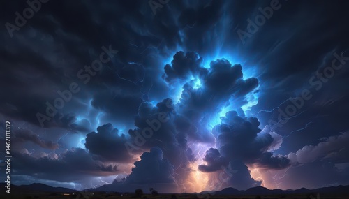 Electric blue energy flashes, lighting up storm clouds with an ethereal otherworldly glow, ethereal, storm, clouds