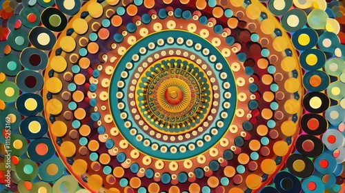 Electric Blue Harmony. Symmetrical circle pattern in textile art